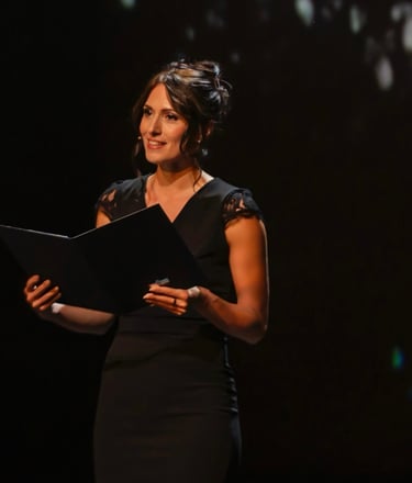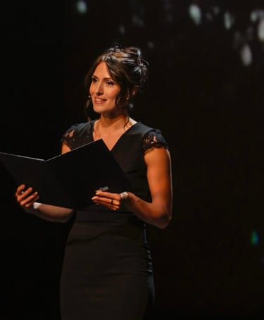 As a professional actress, I feel at home on stage. I don’t just address the audience I connect with them wholeheartedly and hold a space that creates rhythm, warmth, and professionalism for every event.